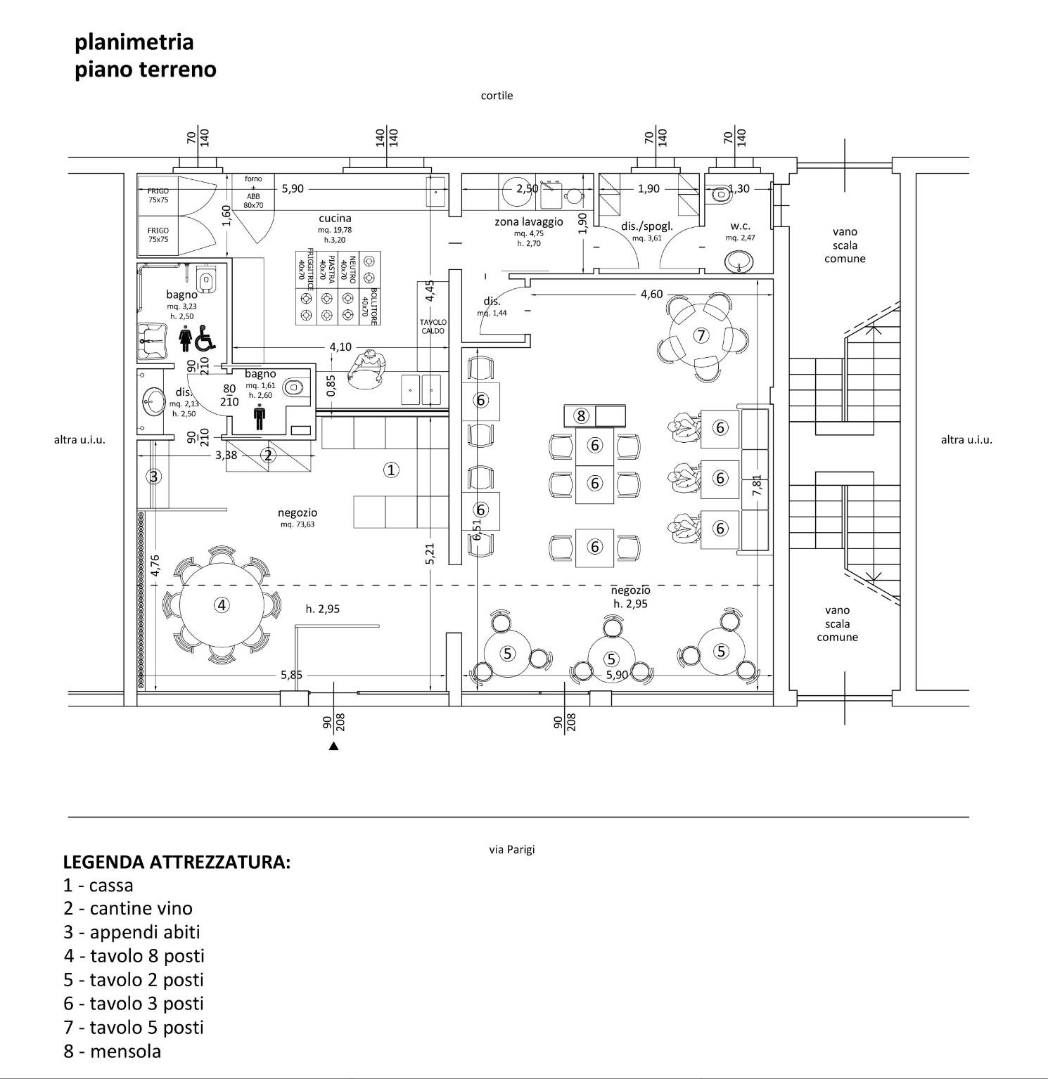 | Negozio - piano terra | 120 Mq | 120 Mqc |